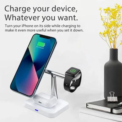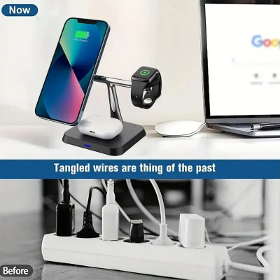 - يدعم الشحن المتزامن لثلاثة أجهزة (هاتف + ساعة + سماعات).