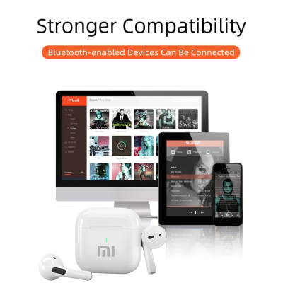 شاومي ايربودز اللاسلكية مع تقنية إلغاء الضوضاء توفر لك صوت استريو ممتاز مع تقنية Bluetooth V5.3 مما يضمن لك اتصالًا سريعًا ومستقرًا تأتي مع بطارية قابلة لإعادة الشحن وتدوم لمدة تصل إلى 6 ساعات.